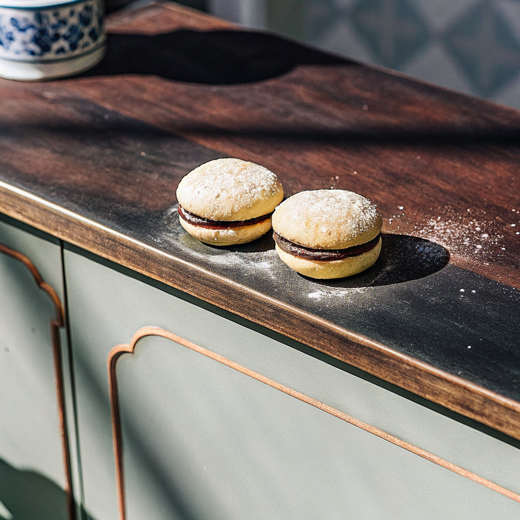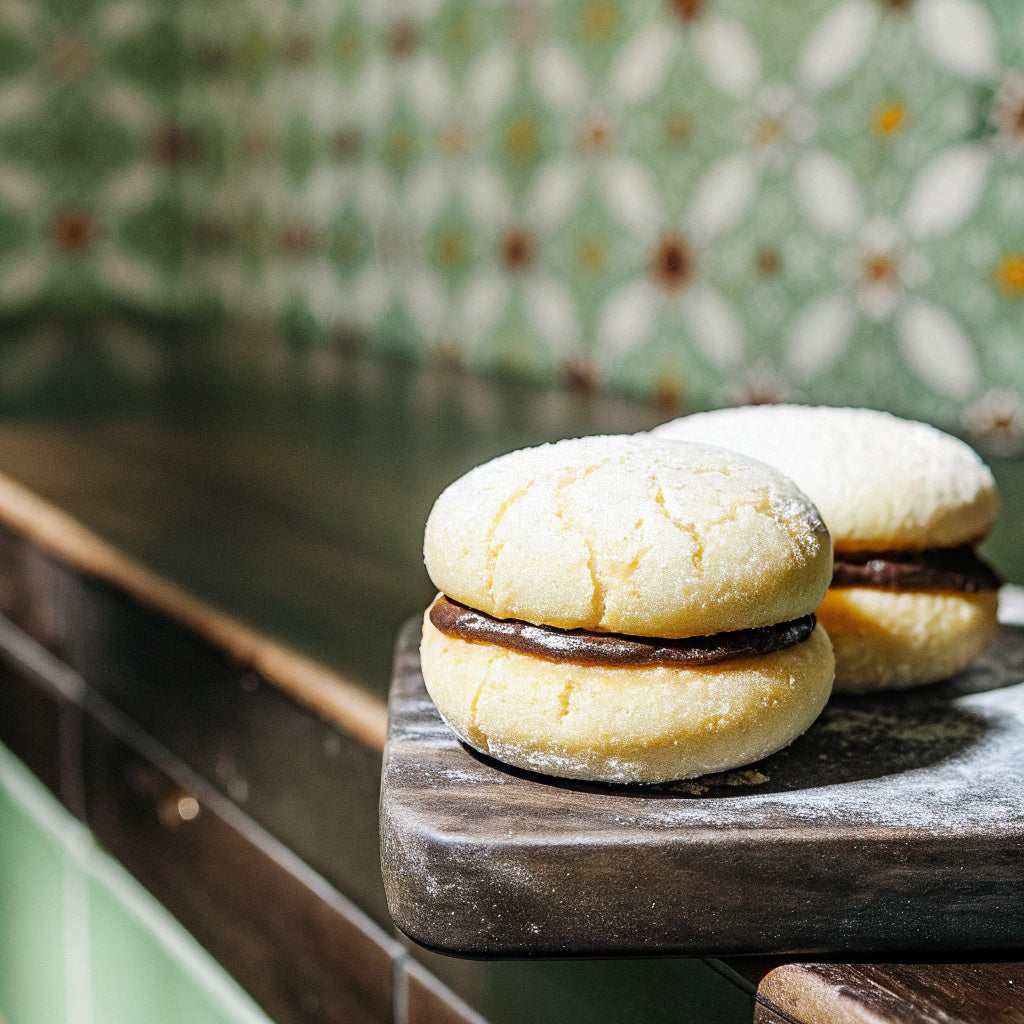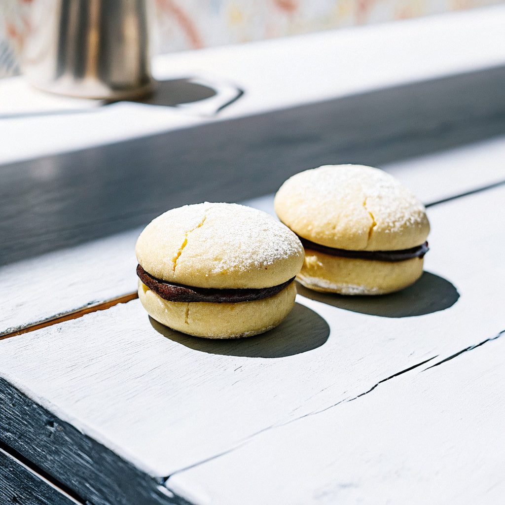 Two petite almond shortbread domes joined with dark chocolate. Ground almonds, butter, sugar, flour, and a pinch of sea salt baked to a crisp edge and short, sandy crumb. Filled with 66–70% dark chocolate for balance and a clean almond finish. Made in small batches. Serve with espresso or give as a refined gift.